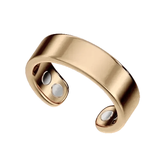 The ring is stainless steel, hypoallergenic, and safe for everyday wear. If you have any implantable medical devices or specific health conditions, consult your physician before use.